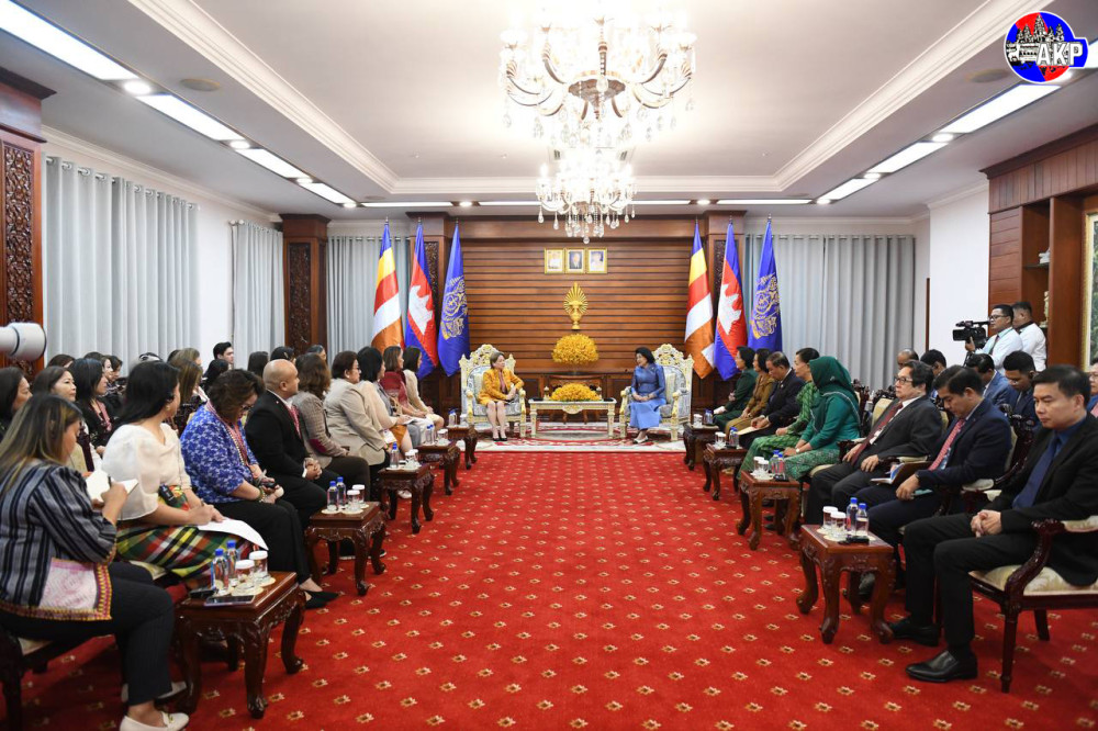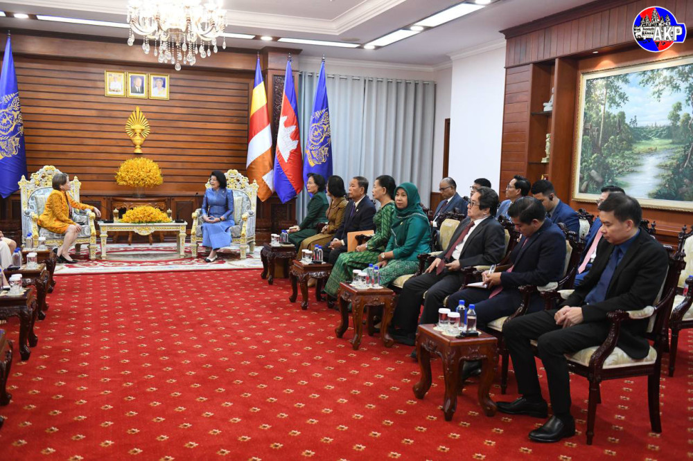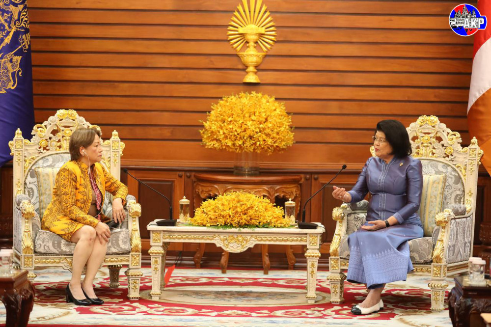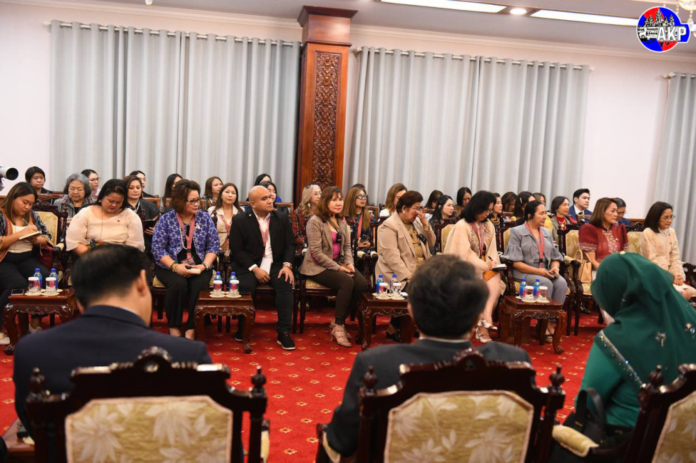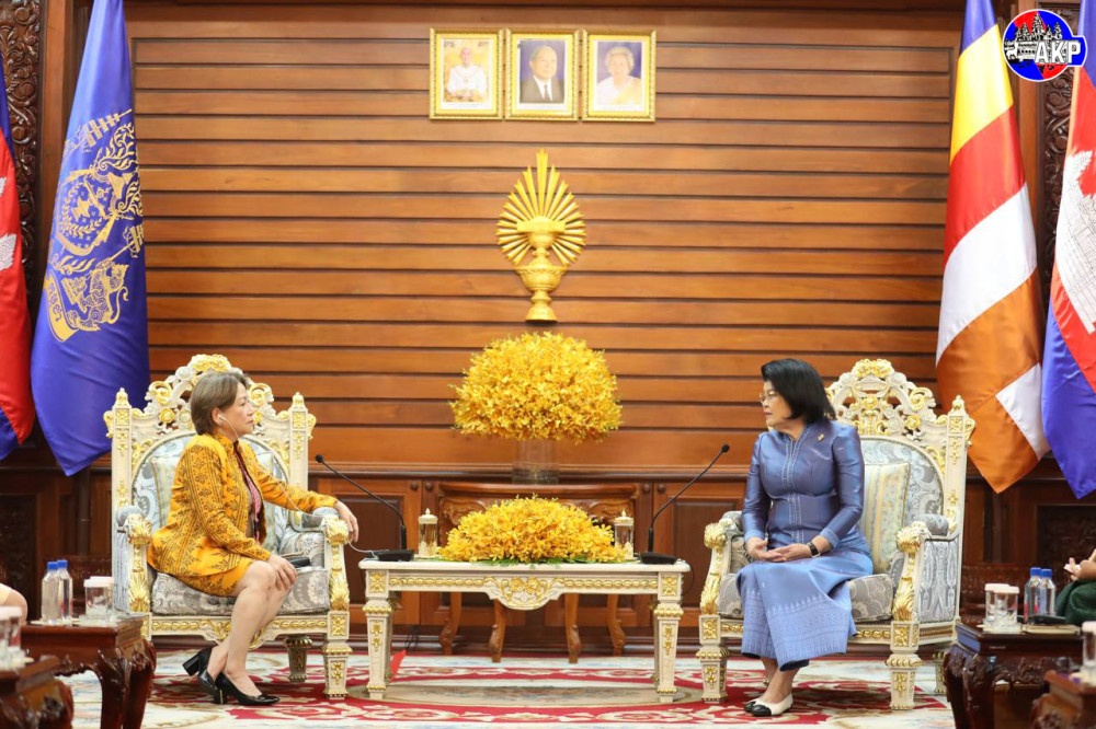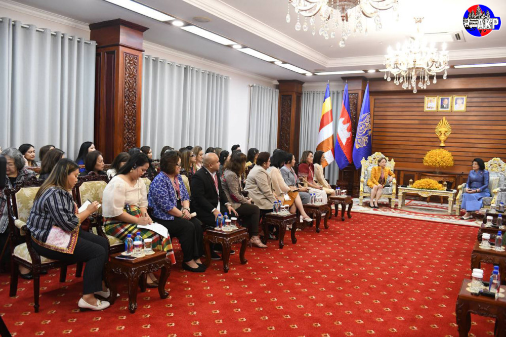 President of the National Assembly (NA) of Cambodia, Samdech Maha Rathsapheathika Thipadei Khuon Sudary (R, Pic. 1), receives a visiting delegation of the Women’s Business Council of the Philippines led by its Chairperson Ms. Rosemarie P. Rafael, at the NA Palace here this morning.
