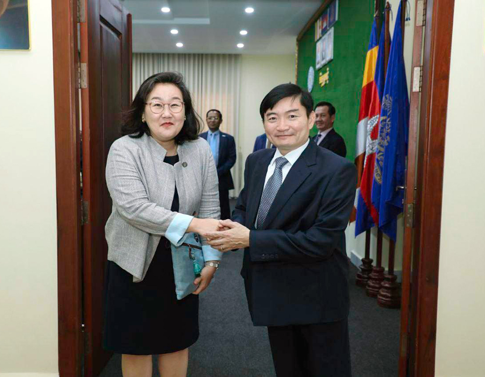 H.E. Heng Sour met Ms. Choi Moon Jung, Country Director of KOICA Cambodia Office, at the ministry on Feb. 5.
