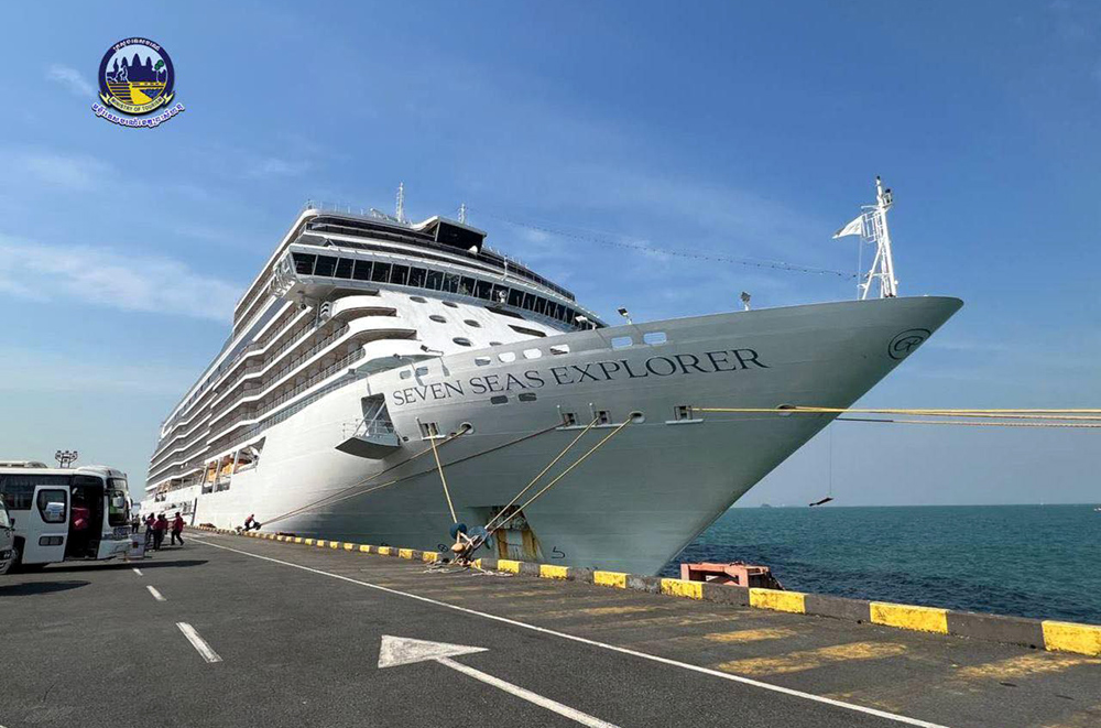 The foreign luxury cruise ship Seven Sea Explorer arrived at the Sihanoukville Autonomous Port this morning, bringing over 700 international tourists from 18 nationalities for a one-day visit to Cambodia.