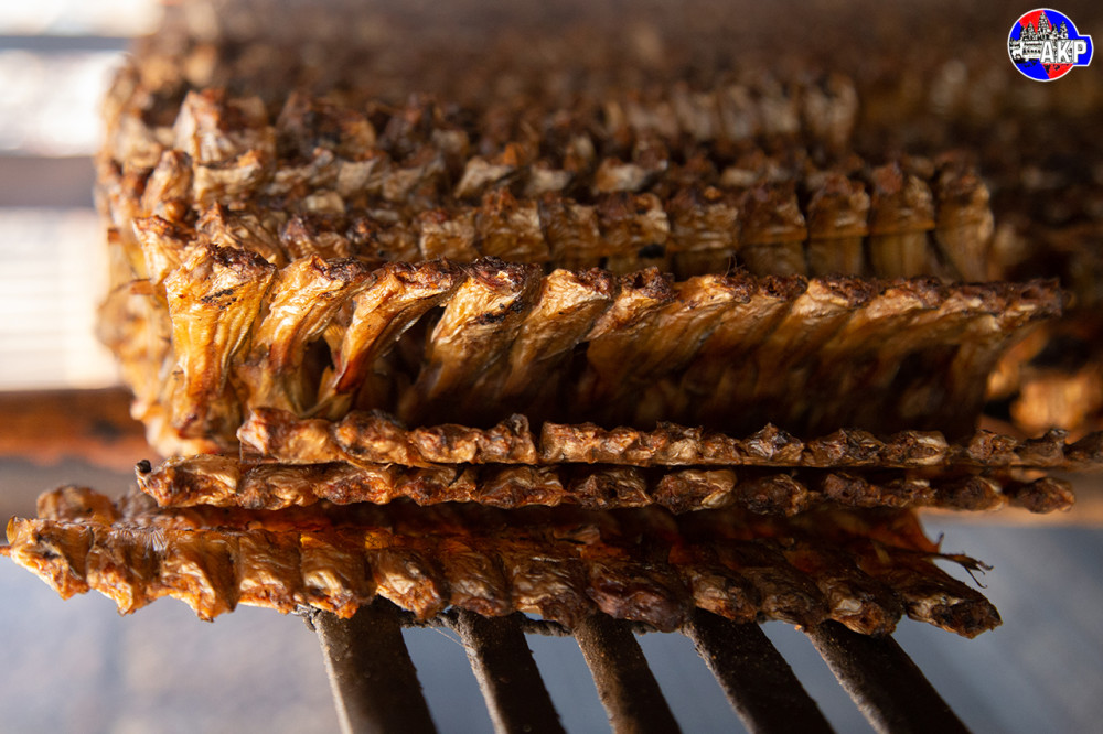 The process of making smoked fish is meticulous. It starts with cleaning and gutting the fish before briefly soaking them in ice water to firm up the flesh. The fish are then skewered and sun-dried for about two hours before being placed in a drying chamber for four to five more hours.