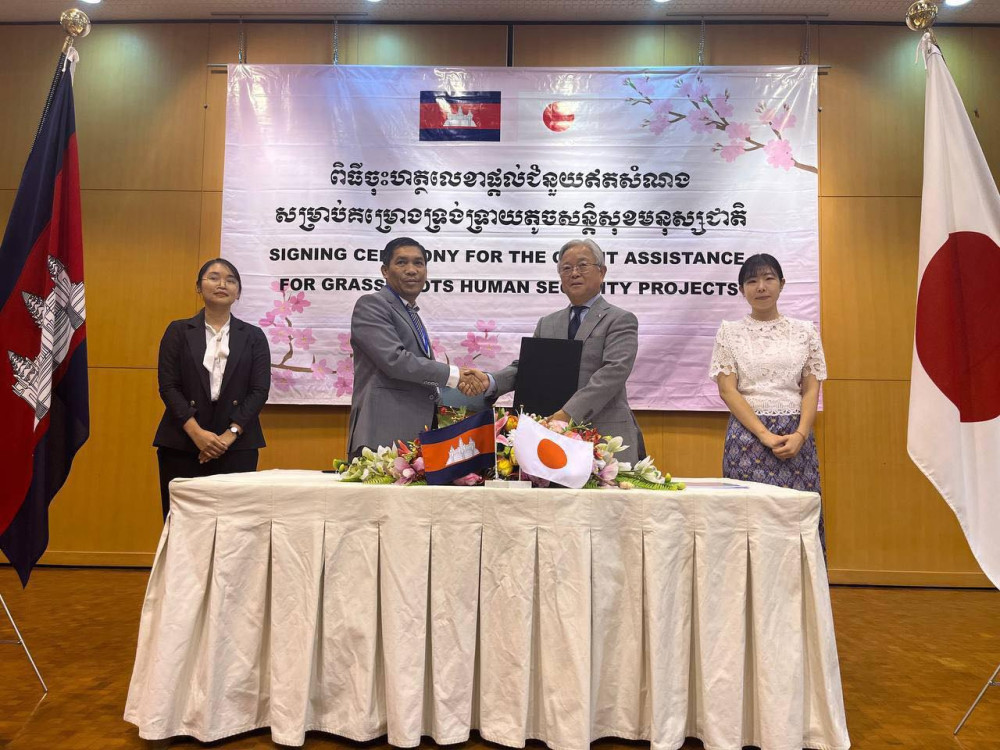 The grants support the Project for the Installment of Component Manufacturing Machine at Orthopaedic Component Factory in Phnom Penh and the Project for the Construction of Pier in Koh Rong Commune, Koh Rong District, Preah Sihanouk Province.