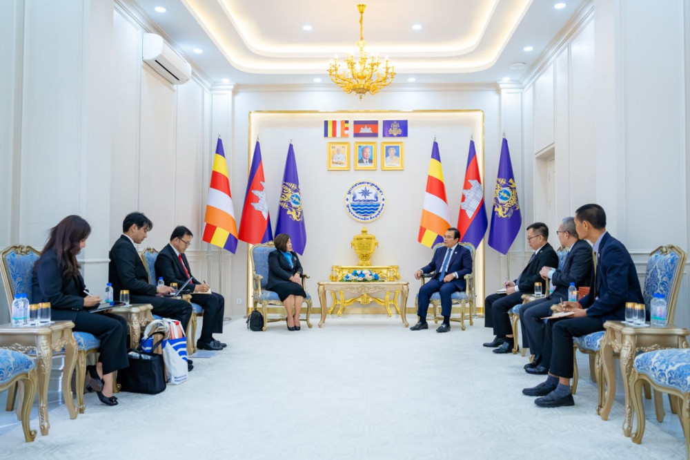 Cambodian Minister of Water Resources and Meteorology H.E. Thor Chetha received here at the ministry on Mar. 4 Ms. Busadee Santipitaks, Chief Executive Officer of the Mekong River Commission Secretariat (MRCS), to discuss the strengthening of water resources cooperation.