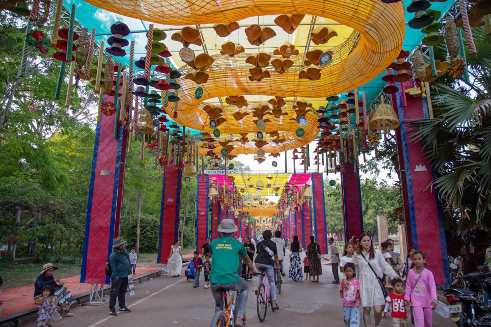 Tourists and locals from Siem Reap are flocking to the site both day and night to enjoy the peaceful setting, take photos, and share joyful moments with family and friends in a festive and harmonious environment.