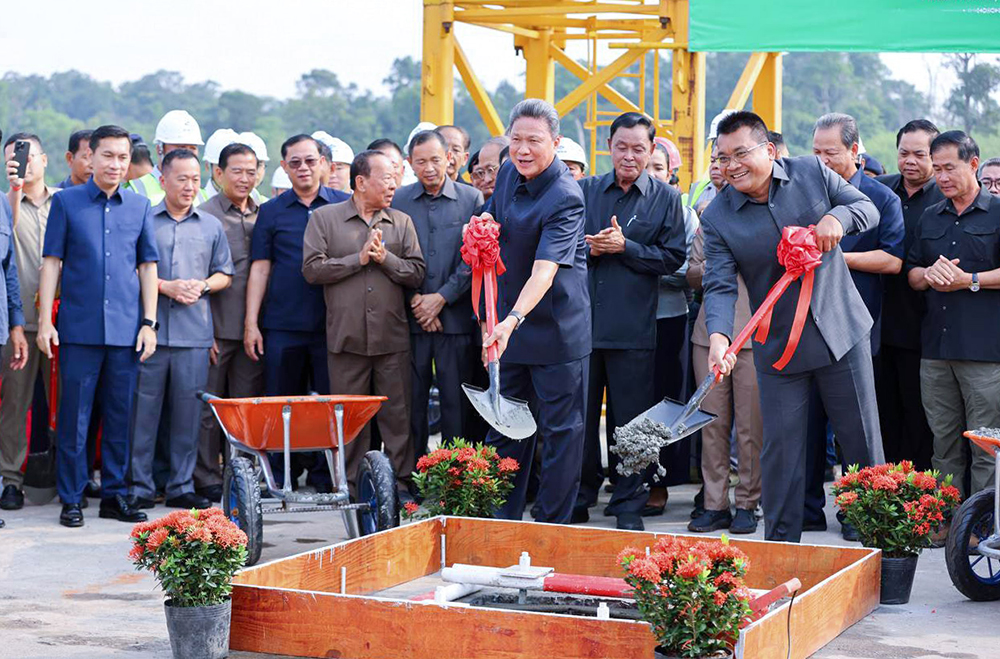 The ceremony for casting to connect the highest bridge in Cambodia was held this morning, under the presidency of H.E. Sun Chanthol, Deputy Prime Minister and First Vice-President of the Council for the Development of Cambodia, with participation from local authorities and representatives of the construction company.