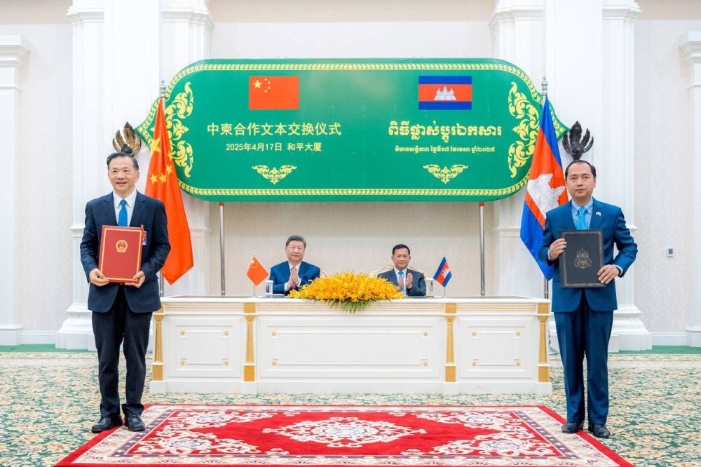 AKP Phnom Penh, April 17, 2025 -- Cambodia and China exchanged and announced 37 cooperation documents in a ceremony organised at the Peace Palace in Phnom Penh this evening, marking a significant step forward in their bilateral ties.