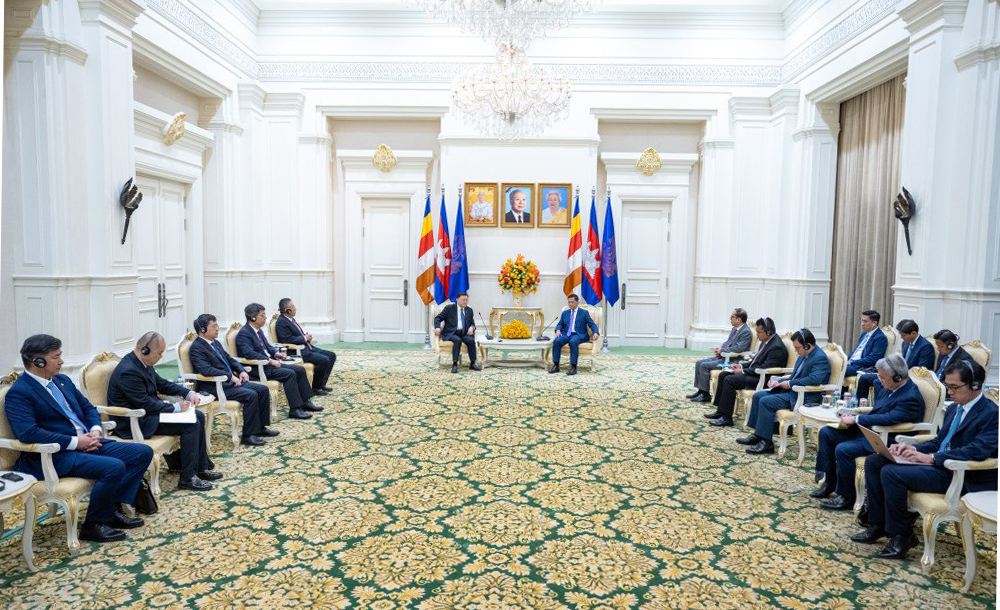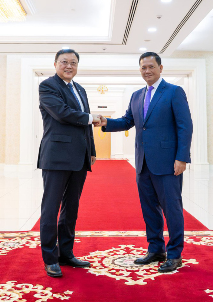 Cambodian Prime Minister Samdech Moha Borvor Thipadei Hun Manet received here at the Peace Palace this morning Mr. Wang Tongzhou, Chairman of China Communications Construction Company (CCCC), the parent company of China Road and Bridge Corporation (CRBC) which is responsible for constructing the Funan Techo Canal.