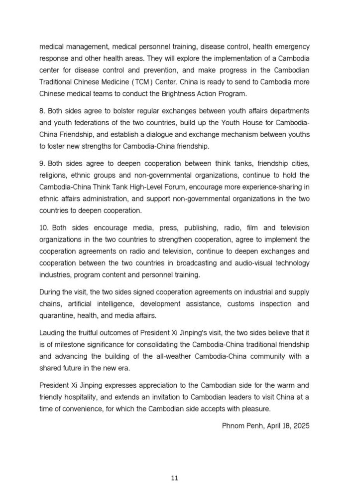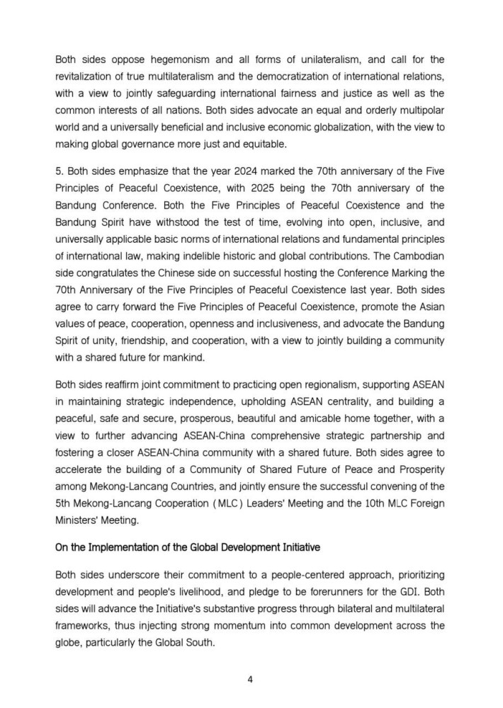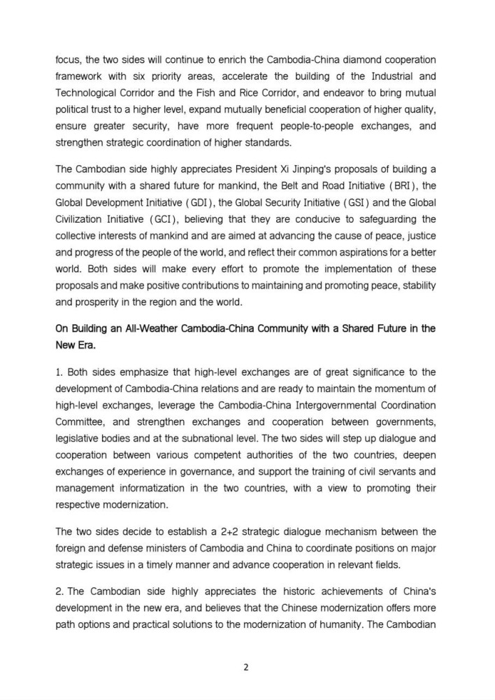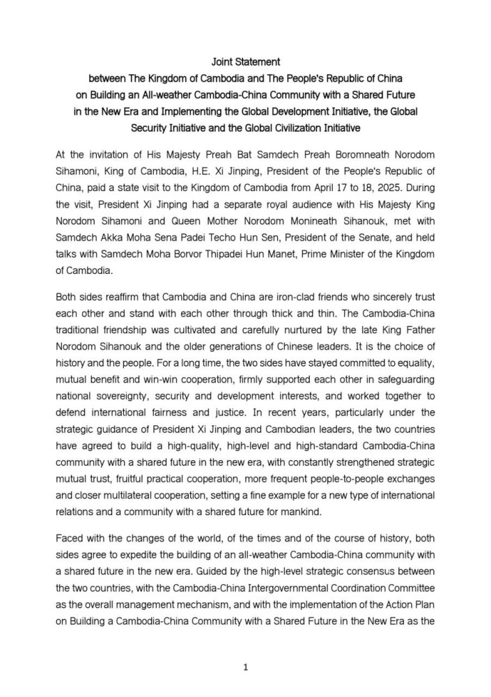 The following is the Joint Statement between the Kingdom of Cambodia and the People's Republic of China on Building an All-weather Cambodia-China Community with a Shared Future in the New Era and Implementing the Global Development Initiative, the Global Security Initiative and the Global Civilization Initiative: