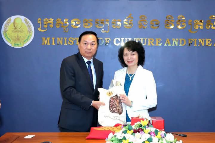 Deputy Director of China Film Archive Ms. Zhang Xuxia, who led her senior delegation to join the launch of the Chinese Film Week, was received by H.E. Hab Touch, Permanent Secretary of State at the Cambodian Ministry of Culture and Fine Arts, in a separate meeting at the ministry on the same day.