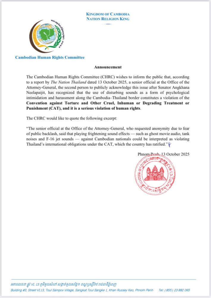 Use of Disturbing Sounds Constitutes a Violation of CAT Convention, Acknowledges Senior Official of Thai Office of Attorney-General