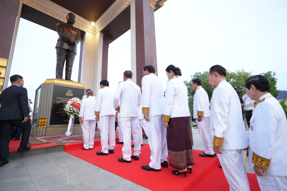 This morning in Phnom Penh, high-ranking delegations of the Senate, National Assembly and government as well as ministries and institutions took turn to lay wreaths at the late King-Father’s Memorial Statue, located in a public park, east of the Monument of Independence in Phnom Penh.