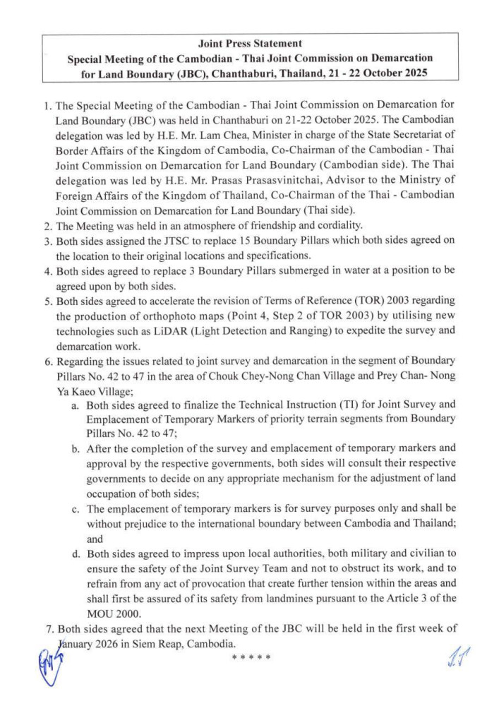 Joint Press Statement of the Special Meeting of the Cambodian-Thai Joint Commission on Demarcation for Land Boundary (JBC)