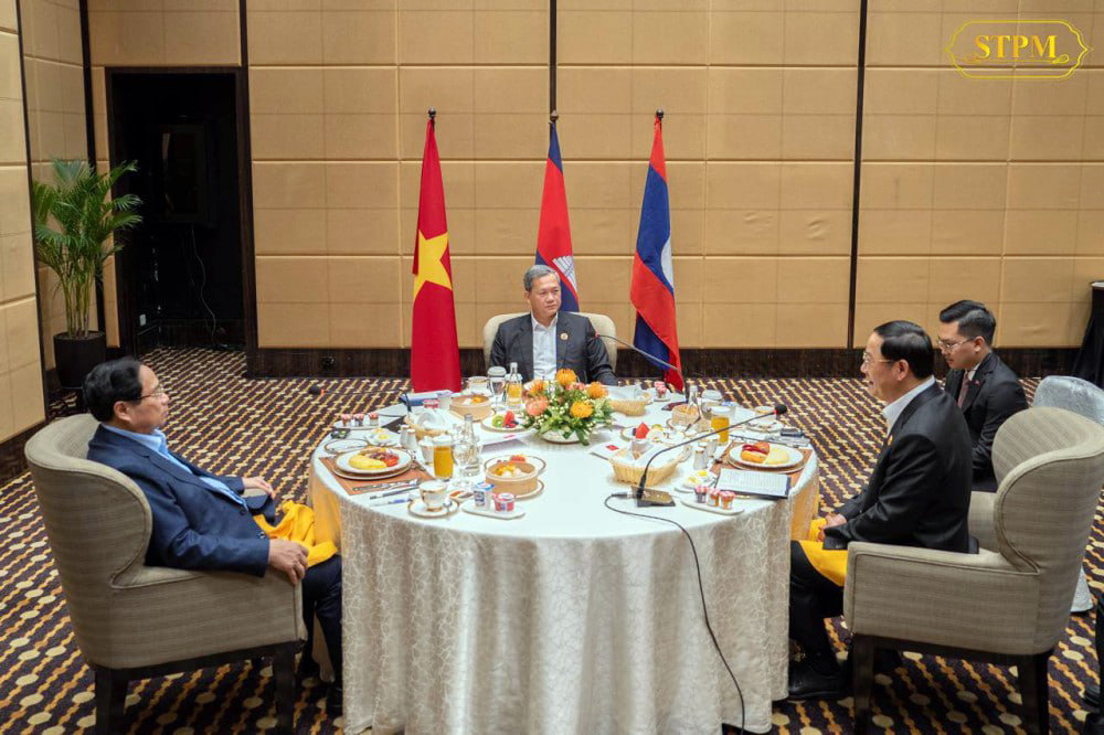 Cambodian Prime Minister Samdech Moha Borvor Thipadei Hun Manet participated in a working breakfast with his Lao and Vietnamese counterparts, H.E. Sonexay Siphandone and H.E. Pham Minh Chinh, on the sidelines of the 47th ASEAN Summit and Related Summits in Kuala Lumpur, Malaysia this morning.