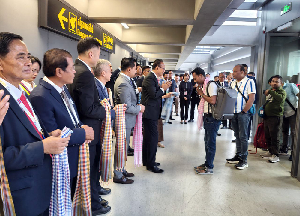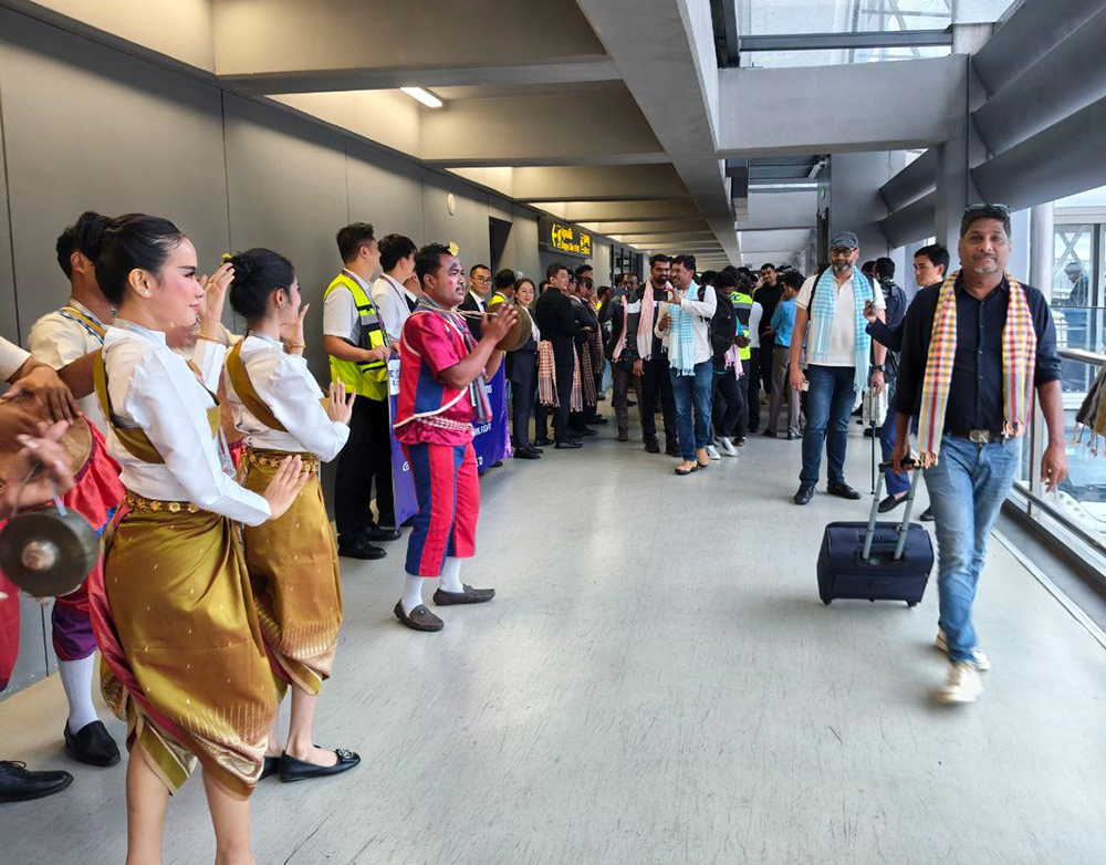 The greeting ceremony was held at Siem Reap Angkor International Airport with high-ranking officials from the State Secretariat of Civil Aviation (SSCA), the Ministry of Tourism, and travel agents, as well as experts from relevant ministries and institutions.