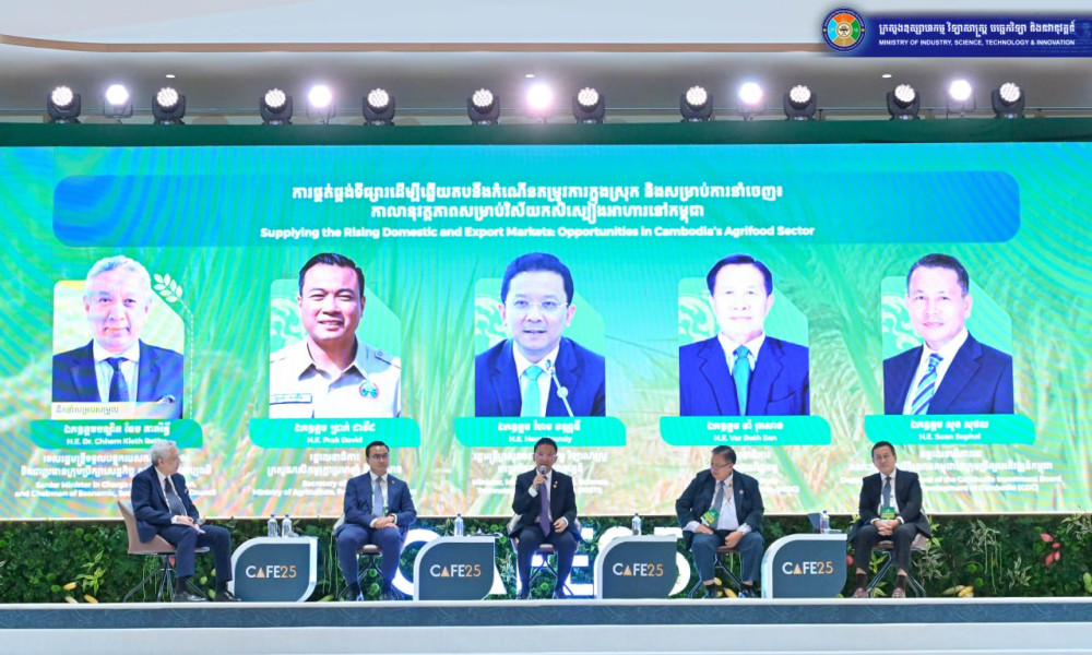 Minister of Industry, Science, Technology & Innovation H.E. Hem Vanndy joined a high-level panel at the Cambodia Agriculture Forum and Exhibition 2025 (CAFE25) on Nov. 13, speaking on “Supplying the Rising Domestic and Export Markets: Opportunities in Cambodia’s Agrifood Sector.”