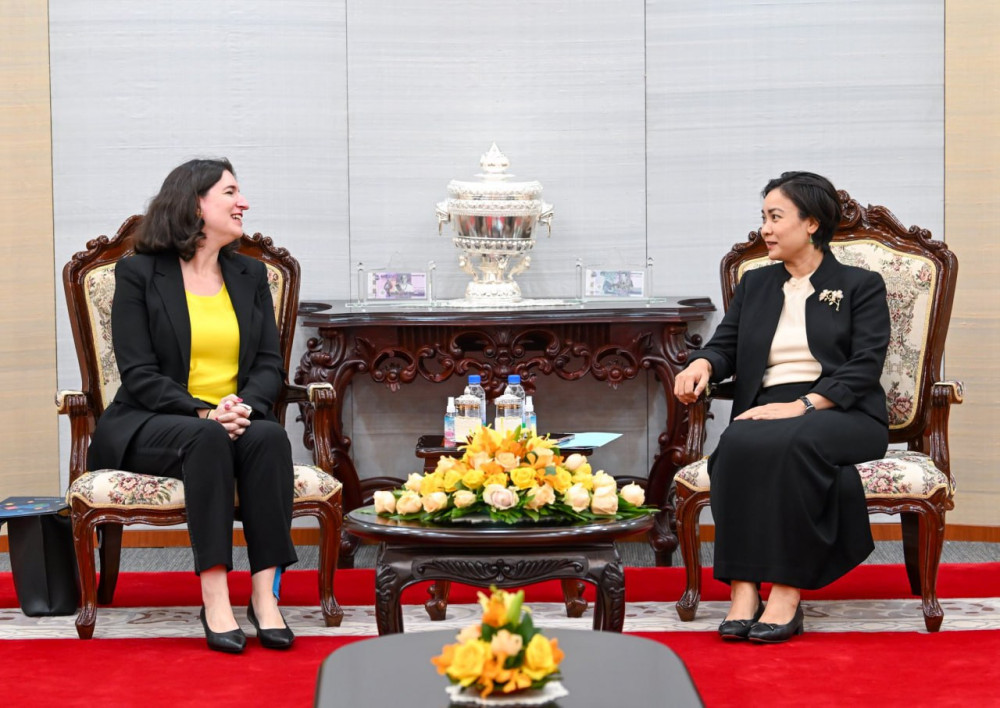 H.E. Dr. Chea Serey, Governor of the National Bank of Cambodia (NBC), received Ms. Tania Meyer, Managing Director of the World Bank in Cambodia, and her delegation on Nov. 25 for a courtesy call and working discussion.