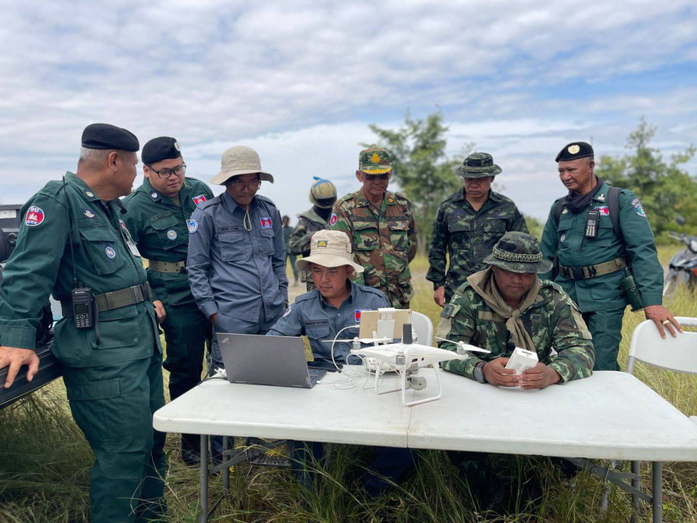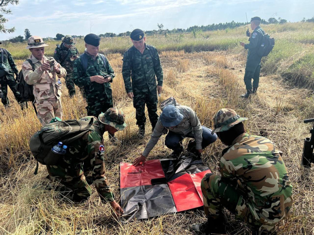 From Nov. 19 to 26, 2025, the Joint Survey Team conducted on-the-ground work between border posts 42 and 43, covering approximately 7 kilometres in Prey Chan village, O’Beichoan commune, O’Chrov district, Banteay Meanchey province. The team has completed aerial photography using drones to produce a photomap and will proceed with surveying and placing temporary markers on the actual ground.