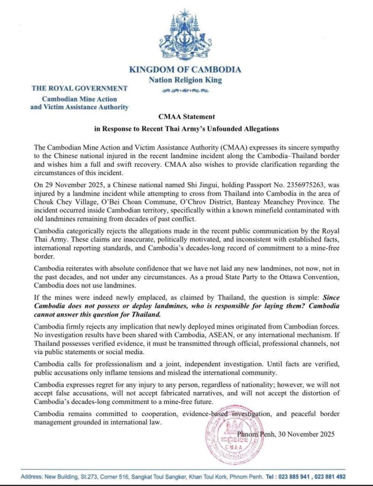 CMAA Issues Statement Rejecting Thai Army’s Unfounded Allegations