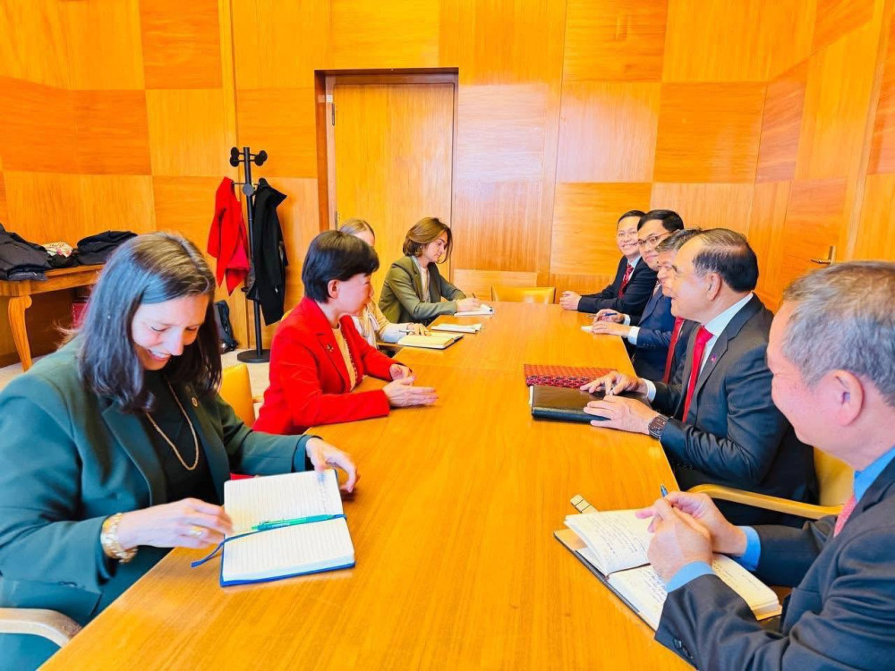 Senior Minister H.E. Ly Thuch, First Vice-President of the Cambodian Mine Action and Victim Assistance Authority (CMAA), presented the briefing during a working meeting in Geneva with H.E. Ms. Izumi Nakamitsu, UN Under-Secretary-General and High Representative for Disarmament Affairs.