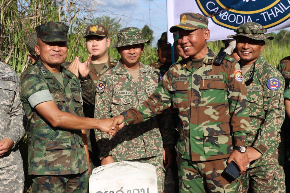 The ASEAN Observation Team (AOT) this afternoon conducted an inspection and observation at Border Posts No. 52–53, located in Kamrieng and Boeung Raing communes, Kamrieng district, Battambang province, opposite Chanthaburi province, Thailand.