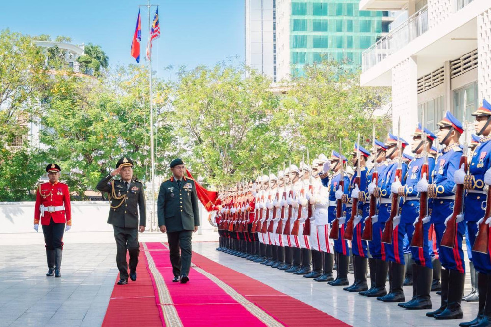 The Commander-in-Chief of the Royal Cambodian Armed Forces (RCAF), H.E. Gen. Vong Pisen, met with his Malaysian counterpart, H.E. Gen. Tan Sri Hj Mohd Nizam bin Hj Jaffar, in Phnom Penh on Sunday to discuss regional security, border stability, and the ongoing ASEAN-led mediation effort between Cambodia and Thailand.