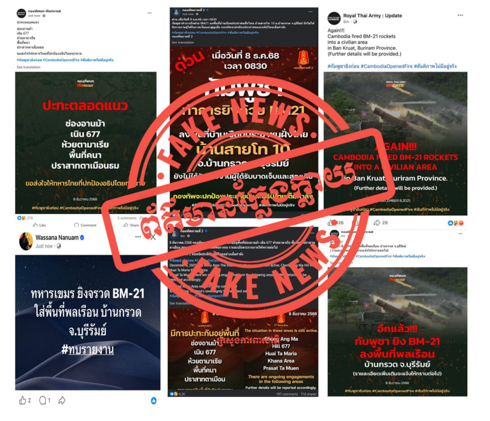 In a press release this morning, the Ministry of National Defence labelled the Thai allegation as false information, stressing that it was the Thai military forces that launched the attack on the Cambodian forces at approximately 05:00 AM in the morning of Dec. 8, 2025.