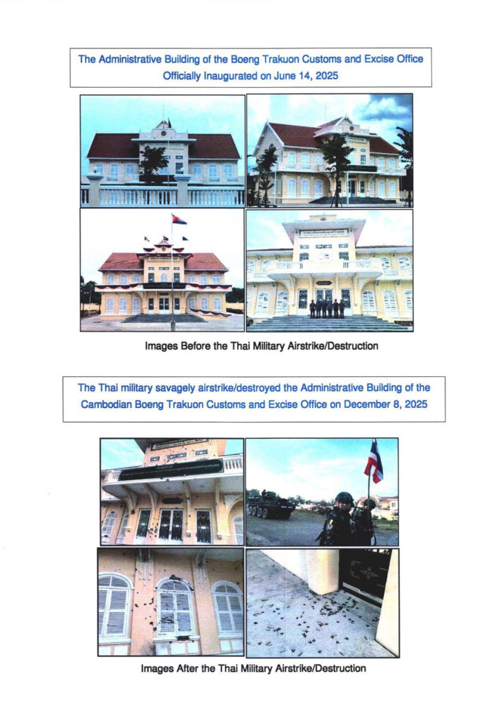 The General Department of Customs and Excise of Cambodia (GDCE) under the Ministry of Economy and Finance has issued a strong condemnation of a lethal military action by Thai armed forces on Dec. 8, 2025, which allegedly involved rockets fired at and destroyed its office building in Boeung Trakuon area, Banteay Meanrith village, Kok Romiet commune, Thmar Puok district, Banteay Meanchey province.