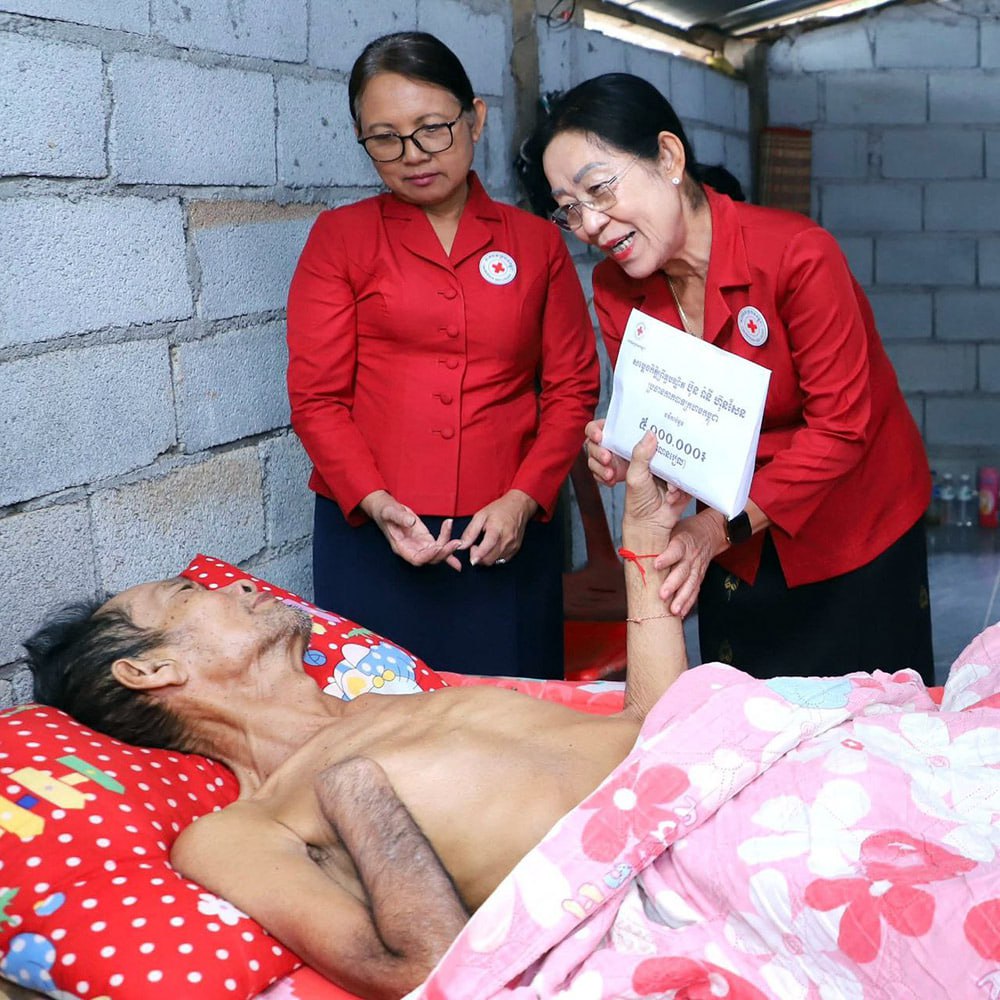 Samdech Kittiprittpundit Bun Rany Hun Sen, President of the Cambodian Red Cross (CRC), dispatched a senior delegation on Tuesday to provide emergency financial and material assistance to the critically ill father of a frontline soldier stationed at the Preah Vihear border.