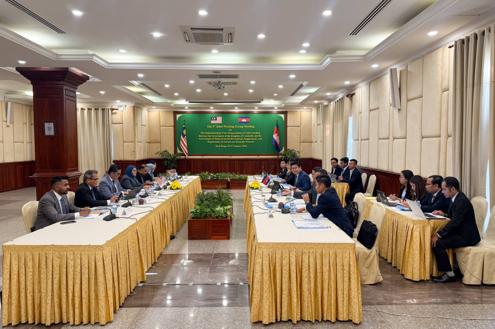 The commitment was highlighted during the 2nd Joint Working Group Meeting, held in Siem Reap province on Jan. 26-27, co-chaired by H.E. Theang Seangveng, Director General of Labour at the Ministry of Labour and Vocational Training, and H.E. Mrs. Rafea'ah binti Nahar, Secretary General of the Ministry of Human Resources of Malaysia.