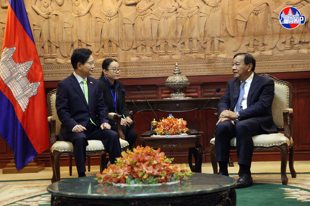 During the meeting, H.E. Prak Sokhonn warmly welcomed and congratulated H.E. Kim Changyong, Ambassador of ROK to Cambodia, on his appointment, expressing satisfaction with the long-standing friendly relations and steady progress in cooperation between the two countries across various sectors, including trade and investment, defence and security, education, and people-to-people exchanges.