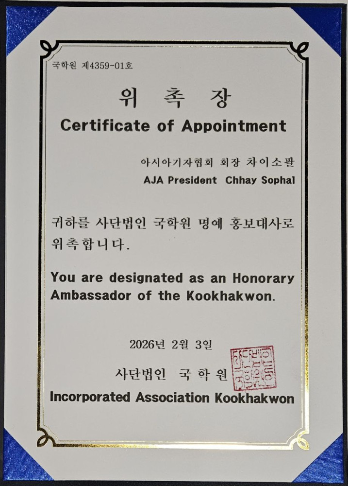 H.E. Dr. Chhay Sophal also serves as the President of the Seoul-based Asian Journalists Association (AJA), which represents media professionals from nearly 30 countries across Asia and the Middle East.