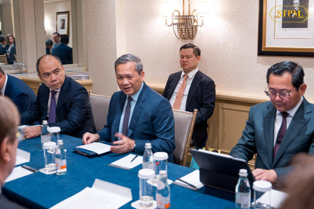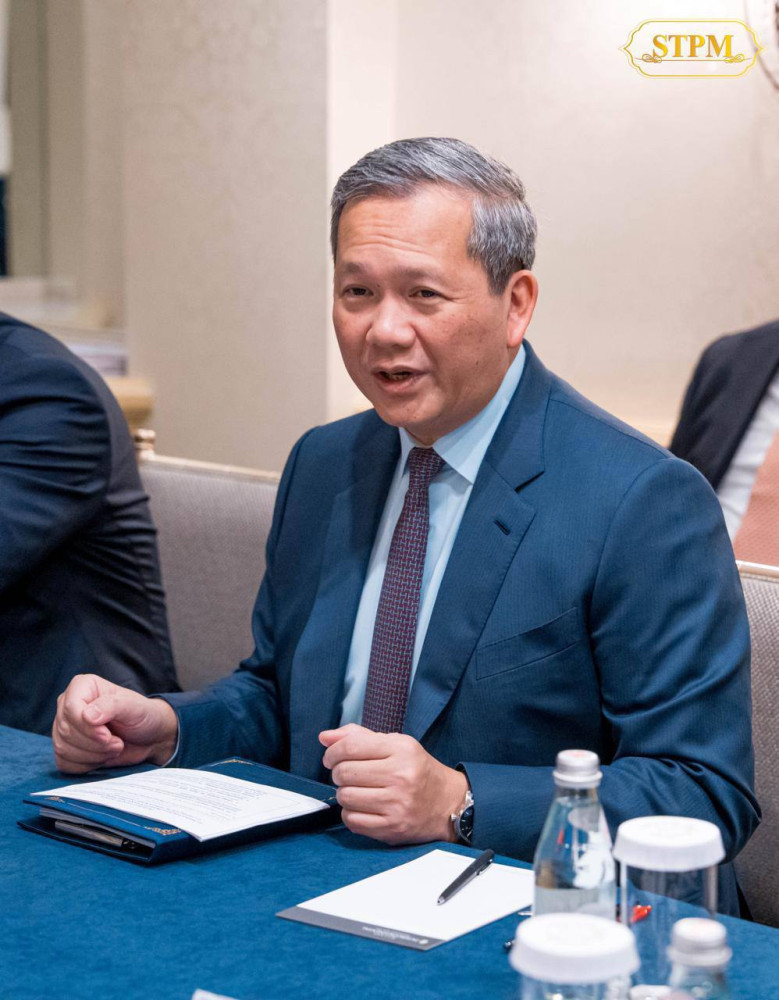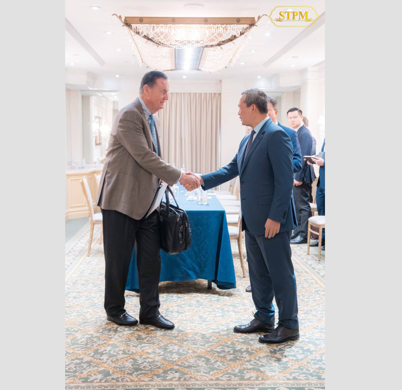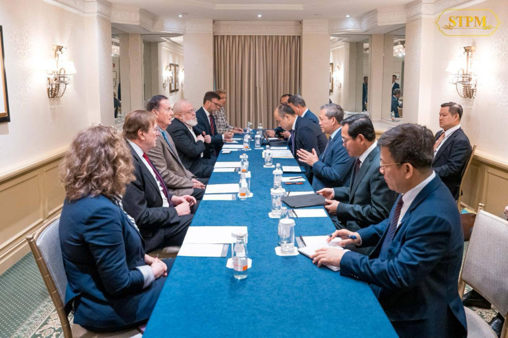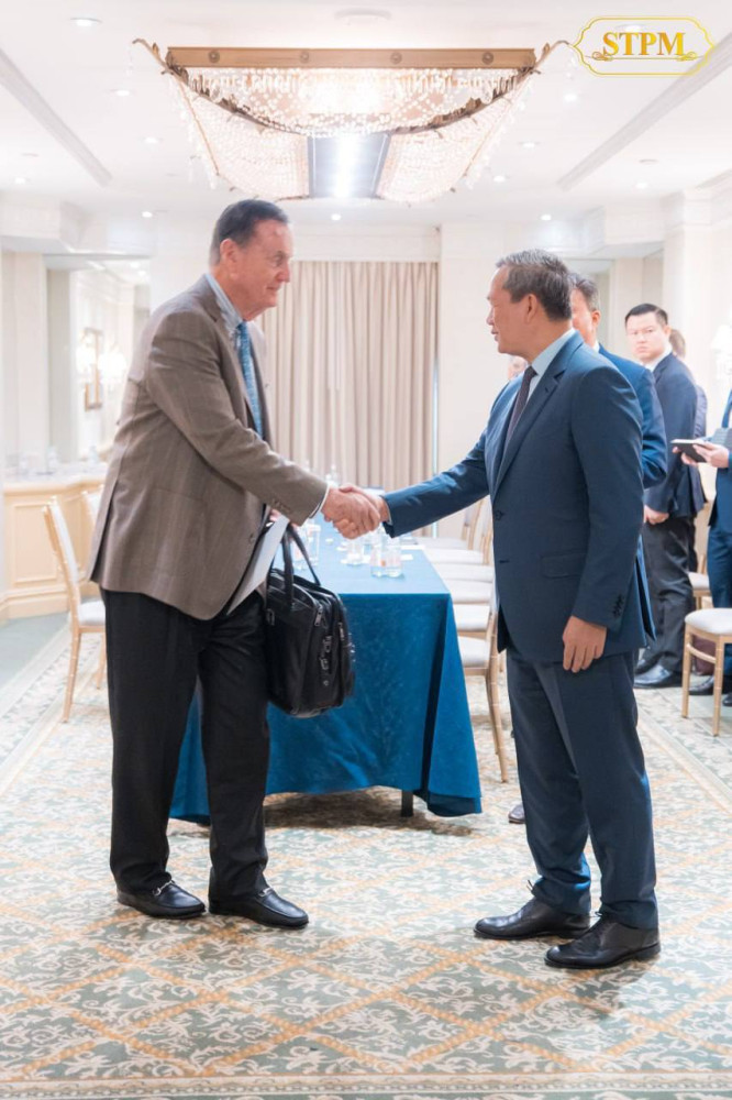 Cambodia’s Prime Minister Samdech Moha Borvor Thipadei Hun Manet (R, Pic. 1) greets H.E. Gen. James Jones, Executive Chairman Emeritus of the Atlantic Council, prior to their courtesy meeting on the morning of Feb. 20 (U.S. time) in Washington D.C., on the sidelines of the inaugural meeting of the Board of Peace.