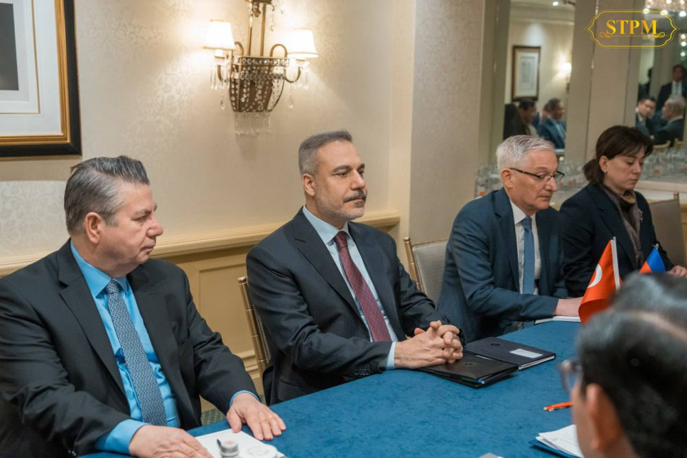 Samdech Moha Borvor Thipadei Hun Manet (R, Pic. 1), Prime Minister of the Kingdom of Cambodia, shakes hands with H.E. Hakan Fidan, Minister of Foreign Affairs of Türkiye, prior to their courtesy meeting on the morning of Feb. 20 (U.S. time) in Washington D.C., on the sidelines of the inaugural meeting of the Board of Peace.