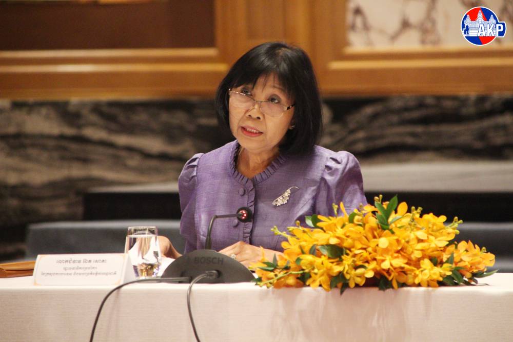 H.E. Mrs. Eat Sophea (Pic. 1), Permanent Secretary of State at the Ministry of Foreign Affairs and International Cooperation, chairs a workshop on strengthening mechanisms to promote economic diplomacy, held at the Shangri-La Hotel, Phnom Penh on Mar. 3.