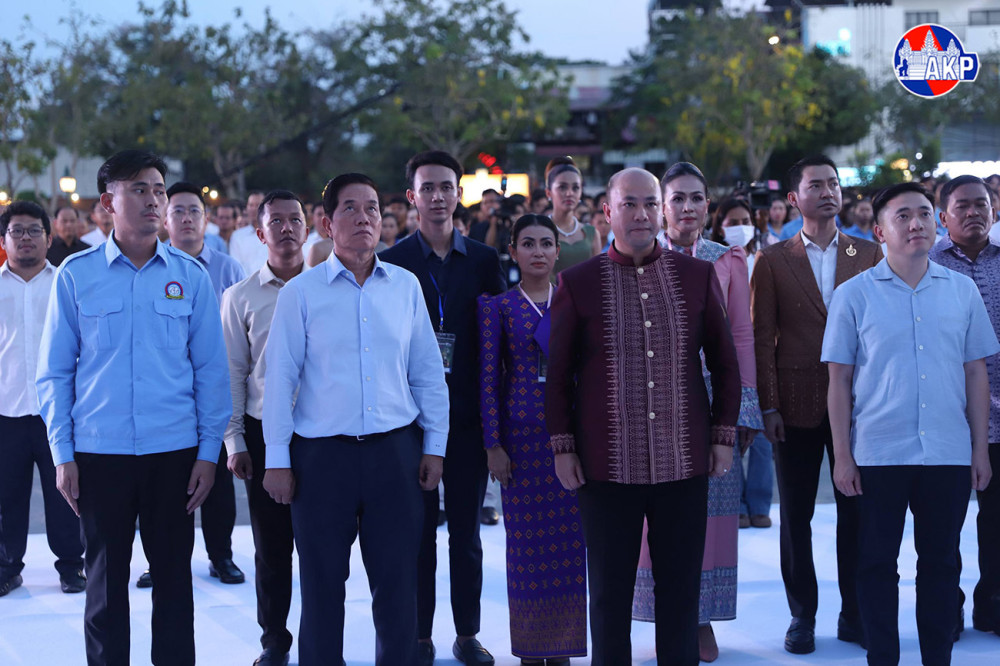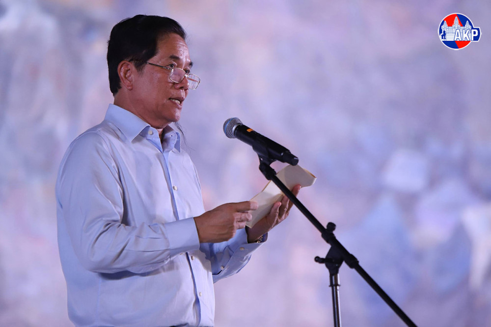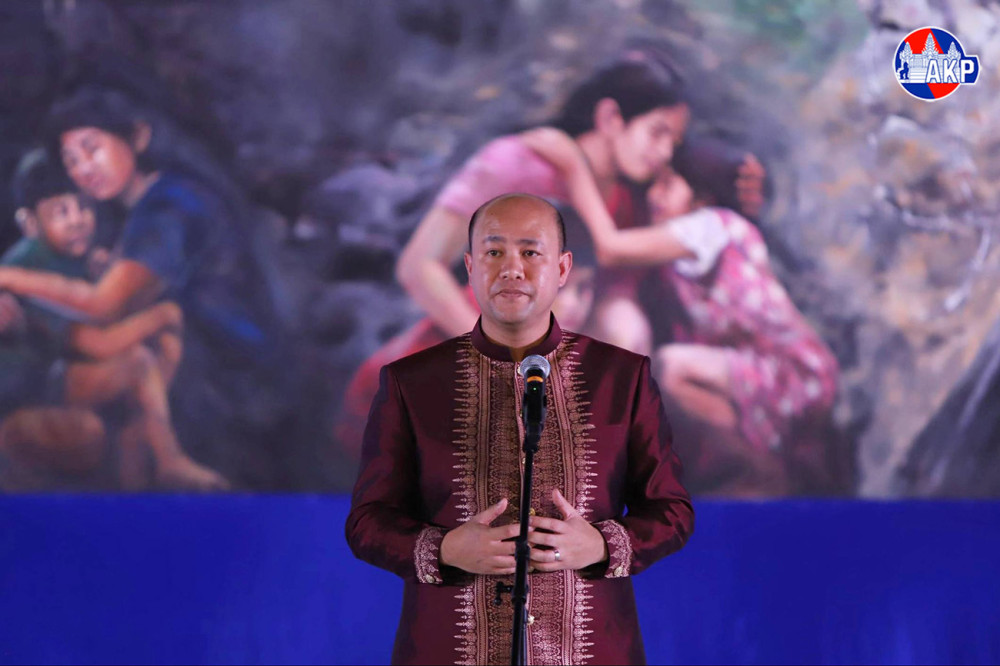 Deputy Prime Minister H.E. Hun Many (Pic. 1), Minister of Civil Service, addresses the participants while he was presiding over the official inauguration of the "Art for Peace" mural in front of Botum Vattey Pagoda in Phnom Penh this evening.