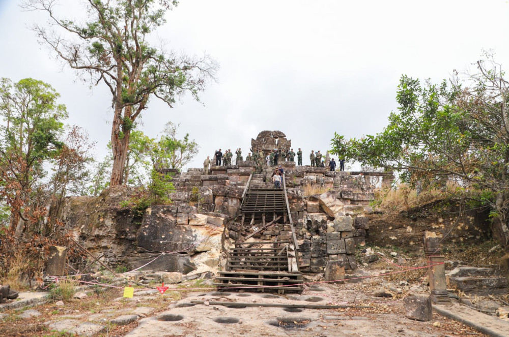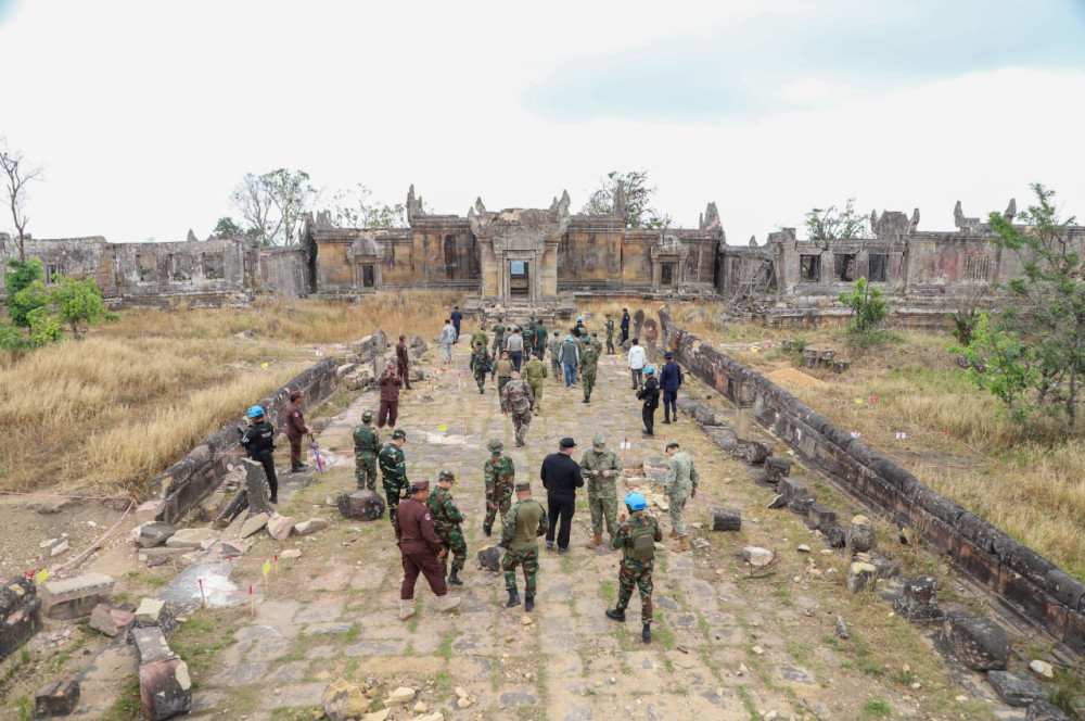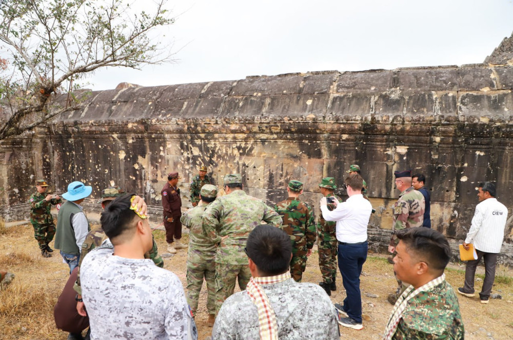 According to H.E. Lt. Gen. Maly Socheata, Spokeswoman of the Ministry of National Defence, the visit took place on Mar. 5, at 11:10 a.m., in Sra’em commune, Choam Ksan district. The delegation inspected the UNESCO World Heritage Site and its surroundings suffered severe damage during attacks by Thai military forces.