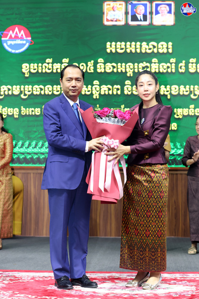H.E. Neth Pheaktra (L, Pic. 1), Minister of Information, and his spouse Lok Chumteav Tuy Serey Ratanak, Honorary President of the Cambodian Women for Peace and Development Association at the Ministry of Information, preside over the celebration of the 115th anniversary of the International Women’s Day (Mar. 8), held at the Ministry this morning under the theme "Peace and Security for Women and Families."