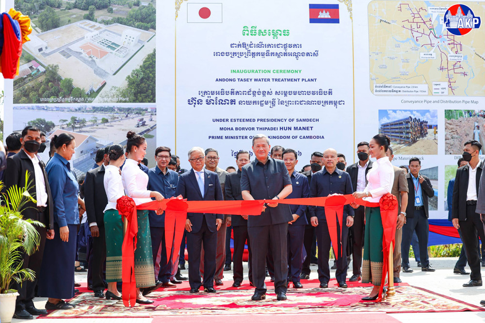 Cambodian Prime Minister Smdech Moha Borvor Thipadei Hun Manet (R, Pic. 1) and Japanese Ambassador to Cambodia H.E. UENO Atsushi, presided over the official inauguration ceremony of the Andong Ta Sey Water Treatment Plant and the groundbreaking ceremony for the expansion of water infrastructure in five provinces.