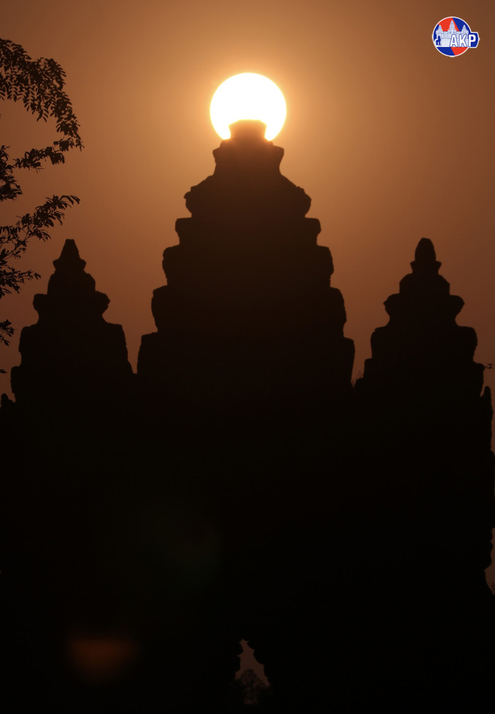 In March 2026, three remarkable equinox phenomena are observed at key locations within the Angkor Archaeological Park in Siem Reap province: (1) sunrise aligned with the central tower of Angkor Wat Temple, (2) sunset aligned with the peak of Takav gate, and (3) sunset aligned with the peak of Bakong Temple.