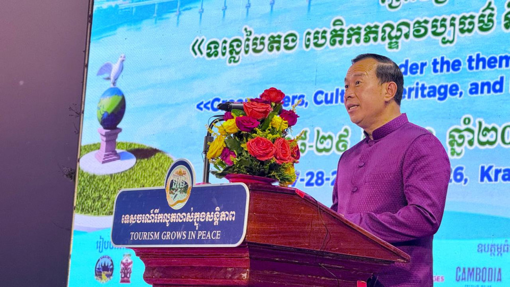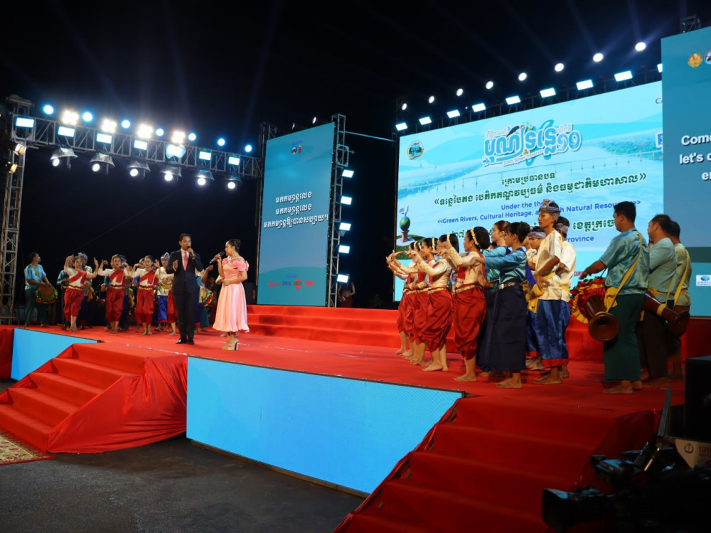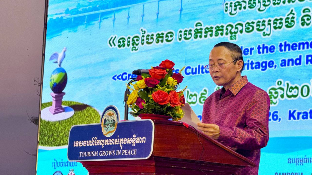 Deputy Prime Minister, H.E. Santepundit Neth Savoeun (Pic. 1), High Representative of Prime Minister Samdech Thipadei Hun Manet, delivers his remarks while he was presiding over the official opening ceremony of the 10th River Festival 2026 in Kratie province this evening.