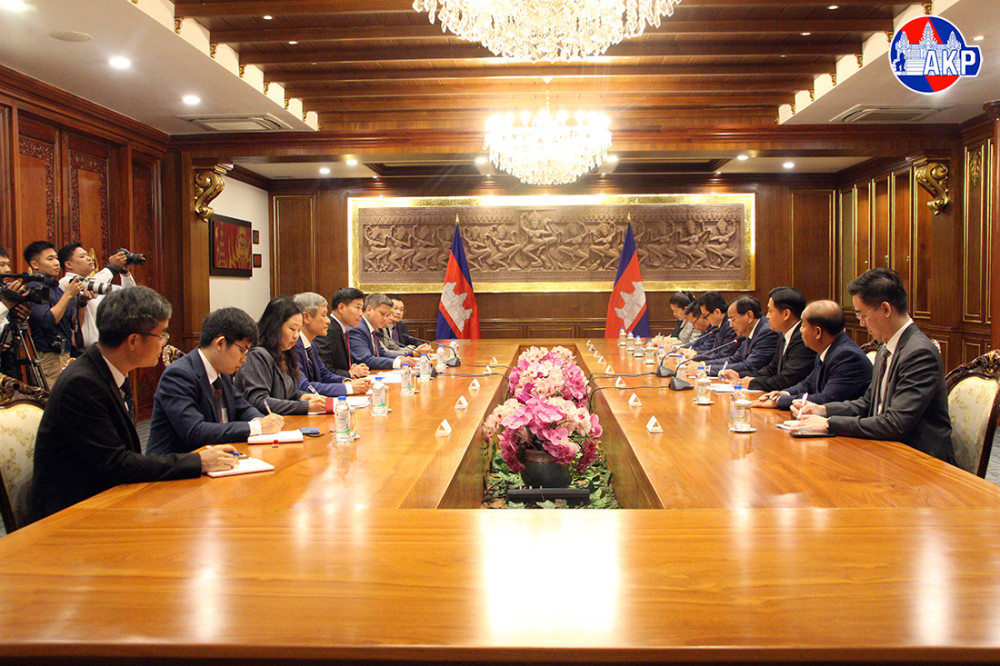 Cambodia’s Deputy Prime Minister and Minister of Foreign Affairs and International Cooperation H.E. Prak Sokhonn (R, Pic. 1) greets visiting H.E. Nguyen Manh Cuong, Member of the Central Committee of the Communist Party of Vietnam and Deputy Minister of Foreign Affairs, prior to their meeting at the Ministry's Office in Phnom Penh this morning.