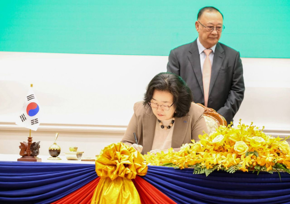 H.E. Abhisantibindit Sar Sokha (R, Pic. 1), Deputy Prime Minister and Minister of Interior, and H.E. KIM Chang Yong, Ambassador of the Republic of Korea to Cambodia, co-preside over the signing ceremony of the Record of Discussion on “Project for Strengthening CSI & Forensic Science Capacity of Police in Cambodia,” held at the Ministry’s Office in Phnom Penh this morning.