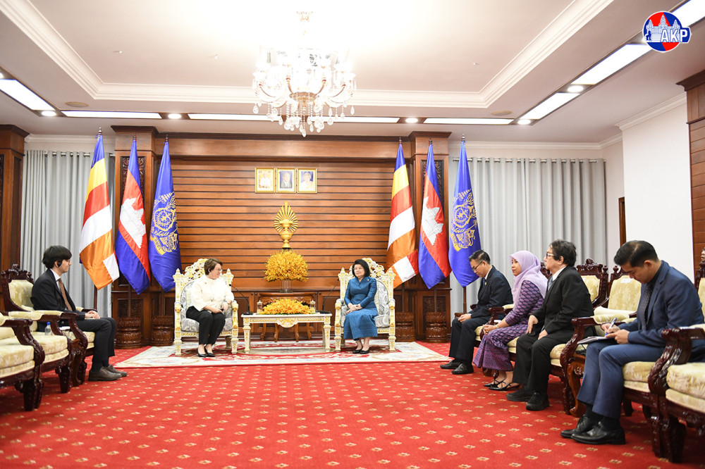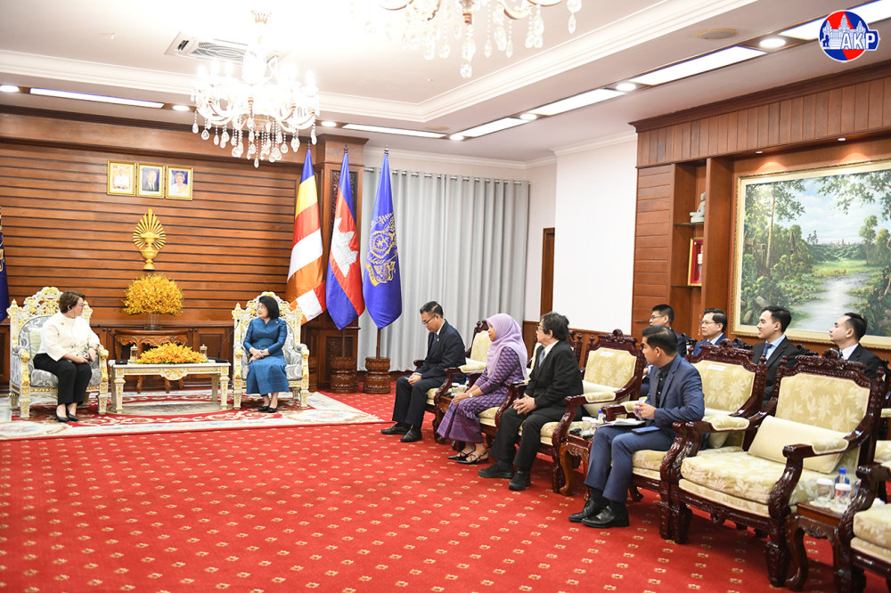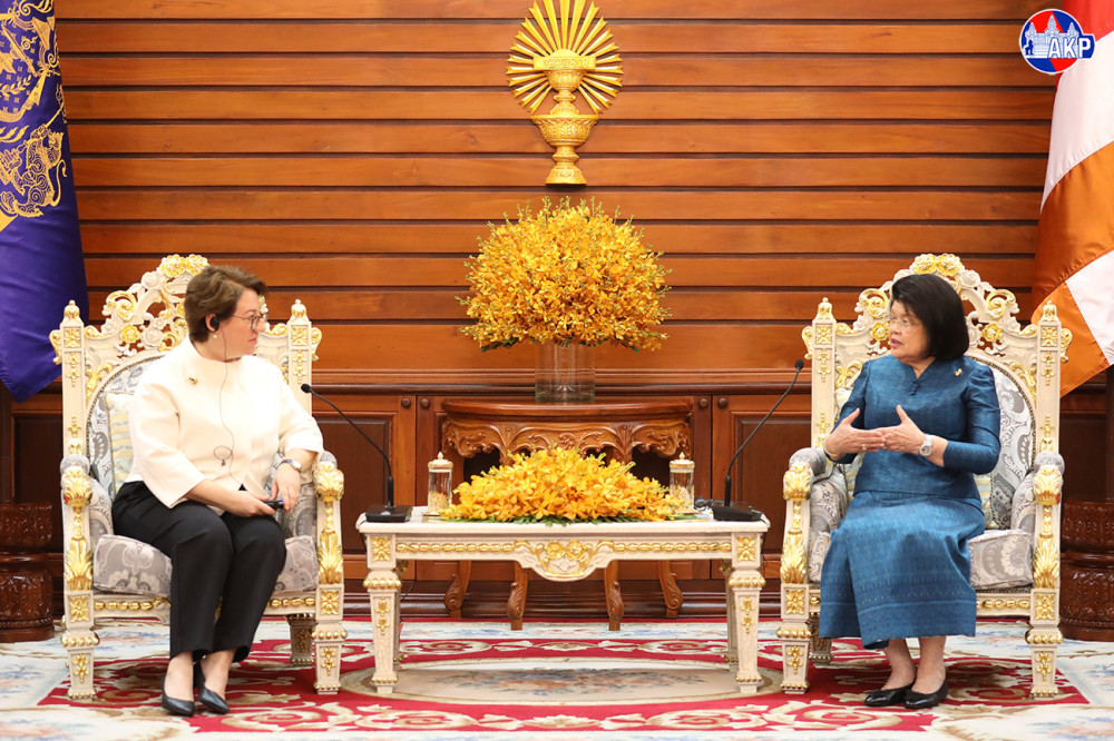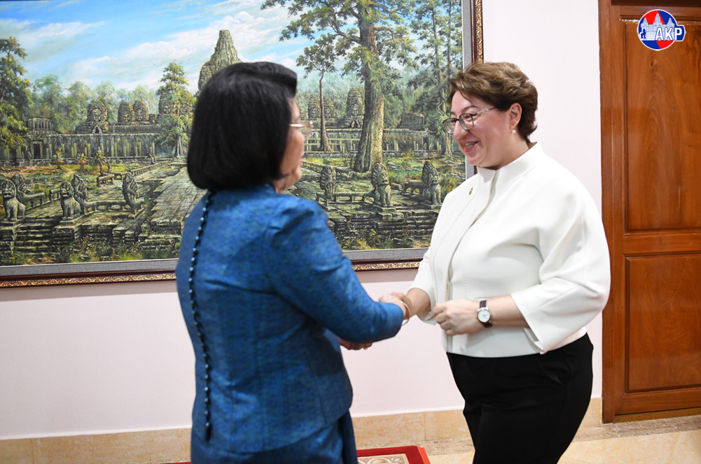 Cambodian National Assembly (NA) President, Samdech Maha Rathsapheathika Thipadei Khuon Sudary (L, Pic. 1), greets outgoing Turkish Ambassador to Cambodia, H.E. Ms. Ulkü Kocaefe, prior to their farewell meeting here at the NA Palace this morning.