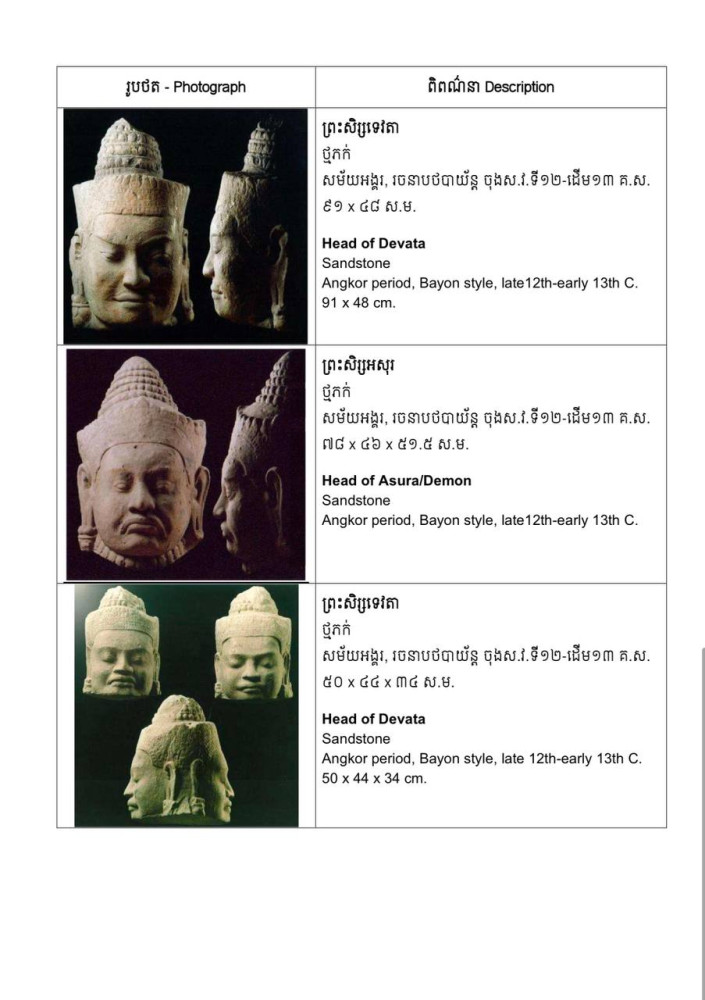 In a press release AKP received this afternoon, the Ministry of Culture and Fine Arts announced that the returned artifacts include a diverse range of sandstone sculptures and bronze works. Among the highlights are exceptional statues from the Bayon period, believed to originate from the historic Angkor Thom site.