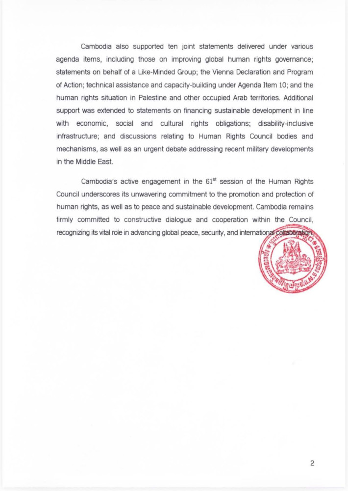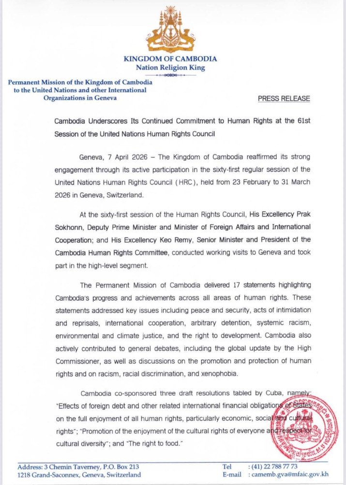 Permanent Mission: Cambodia Underscores Its Continued Commitment to Human Rights