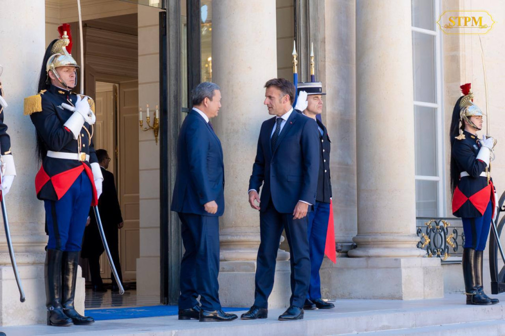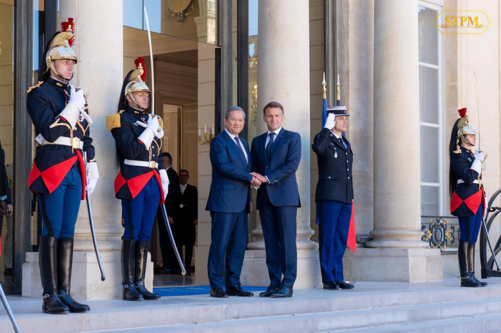 Cambodia’s Prime Minister Samdech Moha Borvor Thipadei Hun Manet holds a bilateral meeting with H.E. Emmanuel Macron, President of the French Republic, at the Élysée Palace in Paris, France on the afternoon of April 8 (French time).