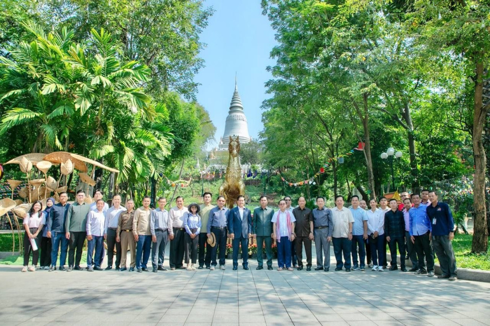 Phnom Penh Municipal Governor H.E. Khuong Sreng (C, Pic. 1), accompanied by his colleagues, inspects the progress of preparations for the Nokor Sankranta event to celebrate the Khmer Traditional New Year, at the Wat Phnom Cultural and Historical Site this morning.