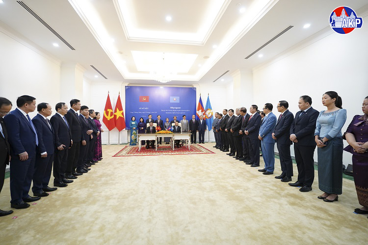 Samdech Say Chhum and H.E. Tran Cam Tu Witness Cooperation Memoranda Exchange Ceremony