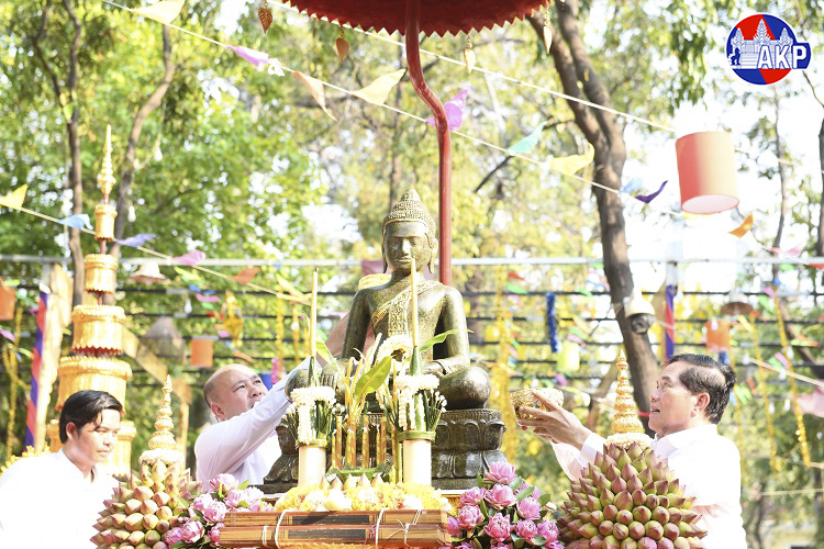 AKP Phnom Penh, April 17, 2026 -- Deputy Prime Minister and Minister of Civil Service H.E. Hun Many led a ceremonial procession of a Buddha statue from Ounalom pagoda to the historic Wat Phnom on Thursday, marking the third and final day of Khmer New Year celebrations.
