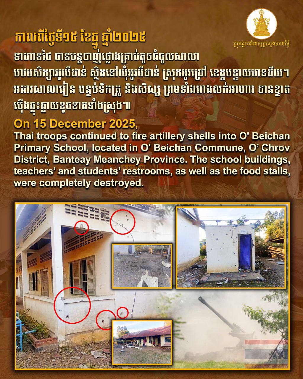 AKP Phnom Penh, December 16, 2025 -- Thai forces have continued to attack schools and other civilian infrastructure in various areas following the renewal of their aggressive military operations against Cambodia’s territorial integrity. According to a statement relea...