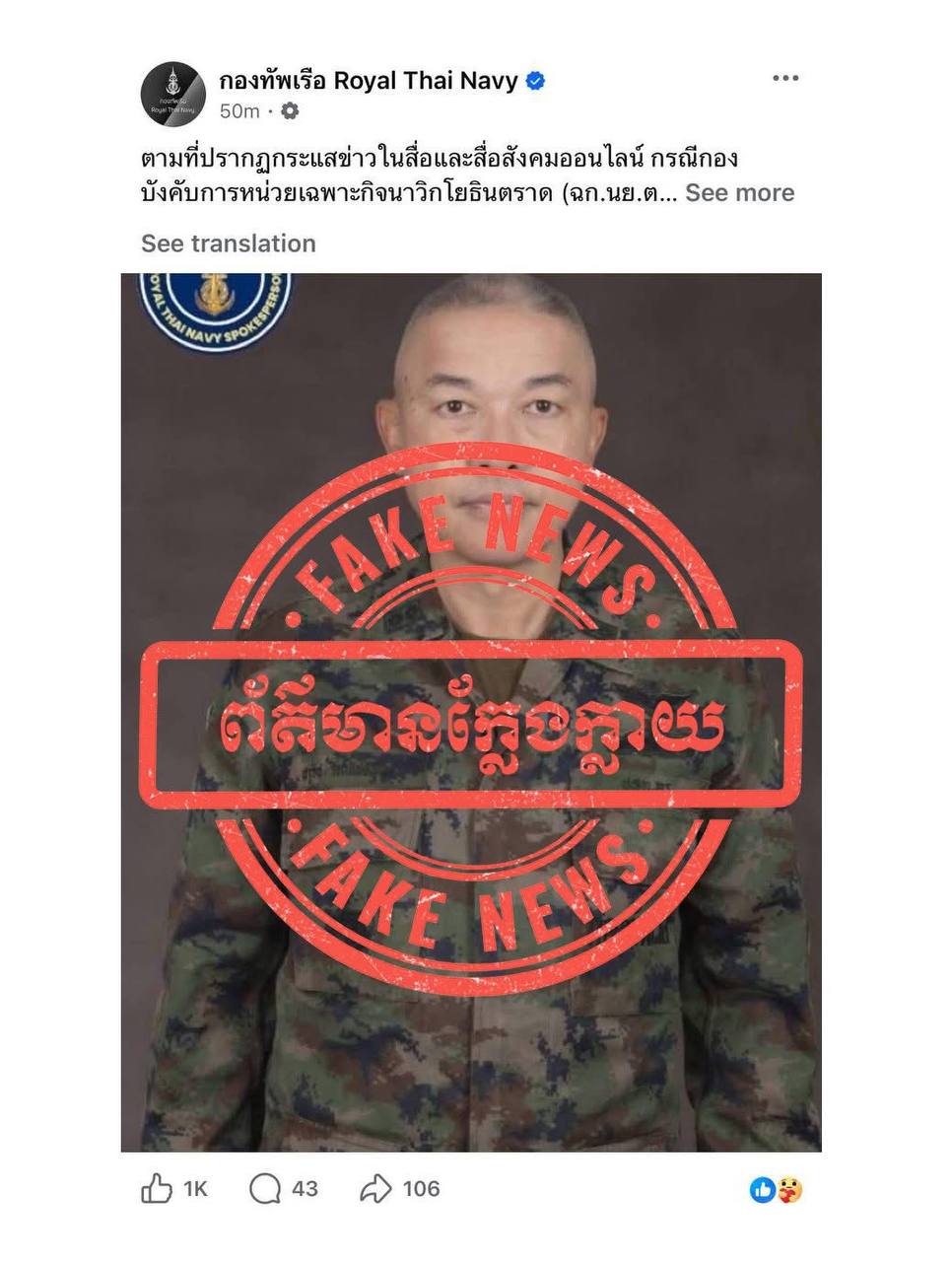 AKP Phnom Penh, December 14, 2025 -- The Ministry of National Defence of Cambodia has categorically rejected the content presented in the official announcement of the Royal Thai Navy, as well as claims circulated on certain Facebook pages. The Ministry emphasise...